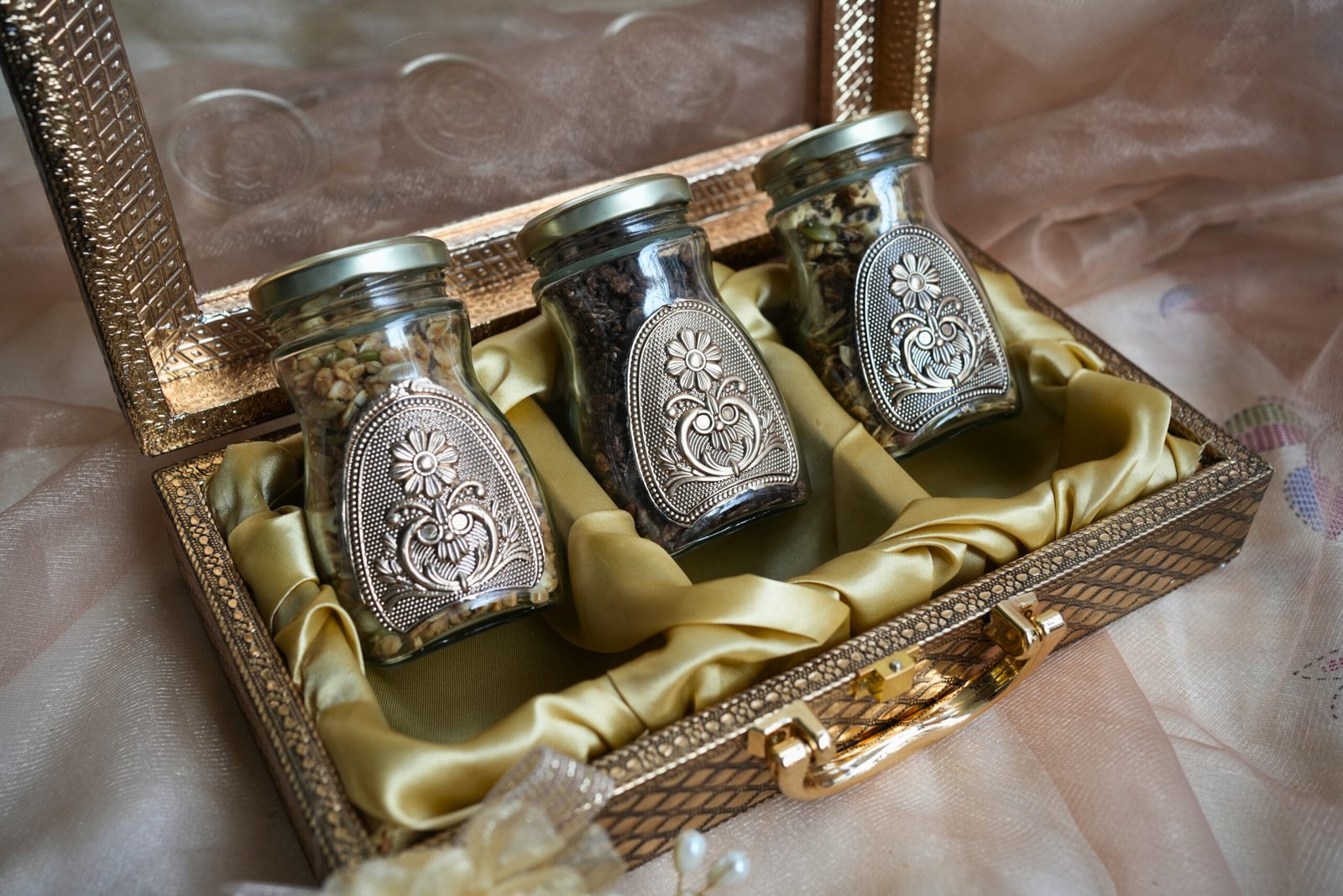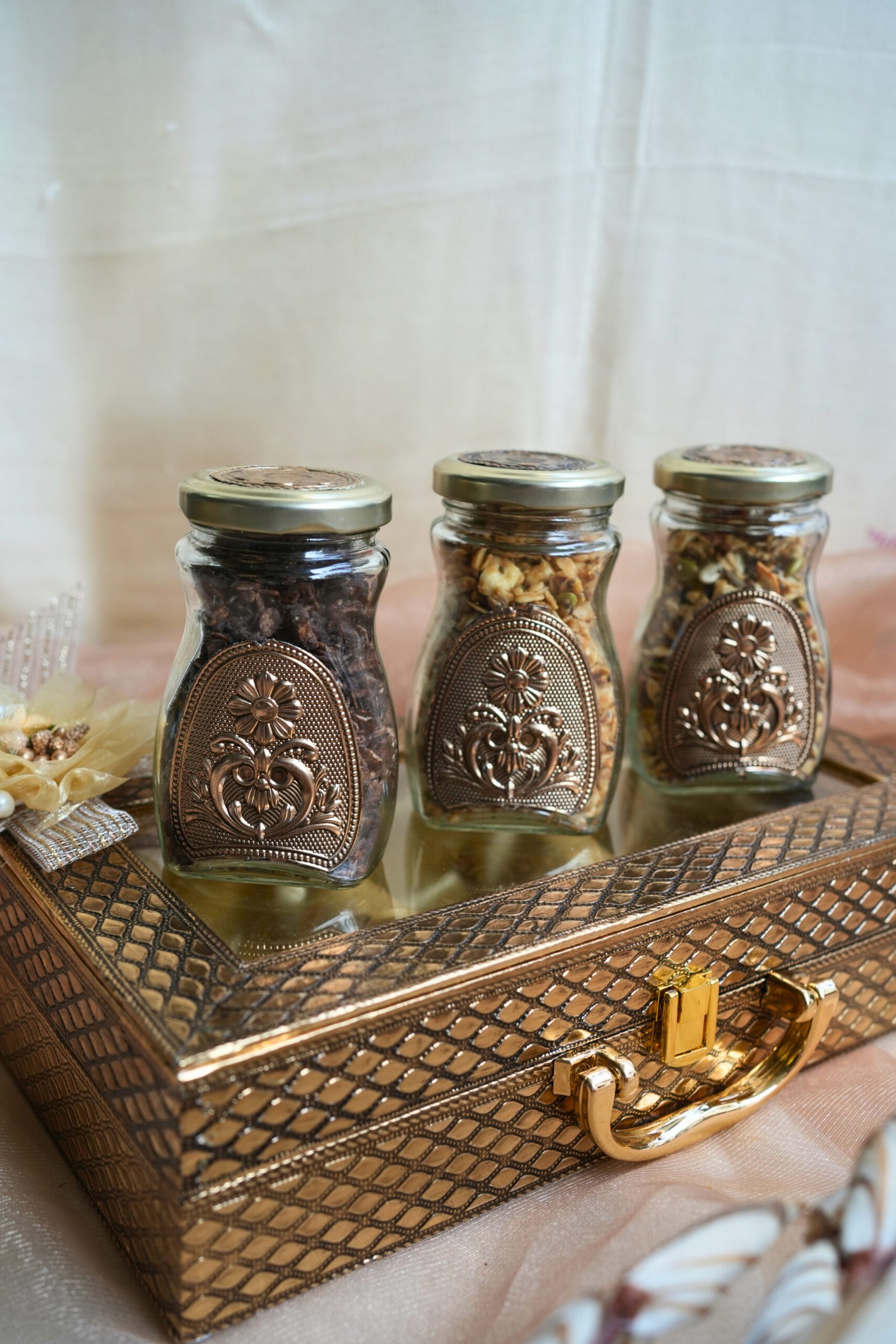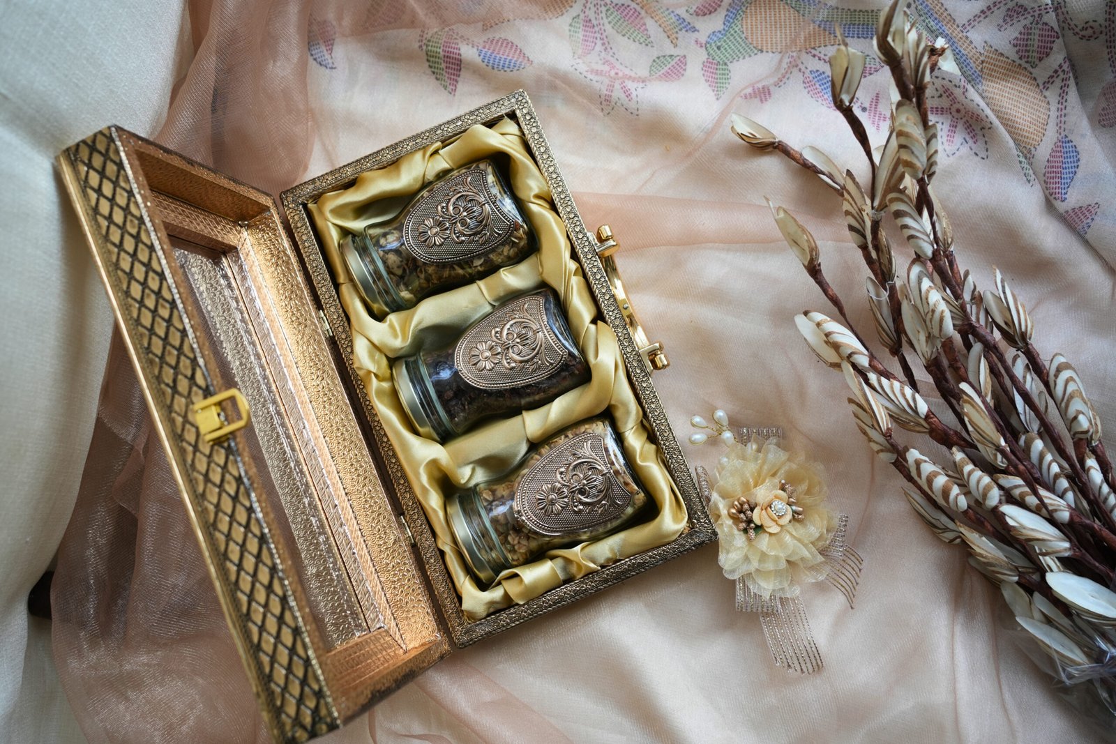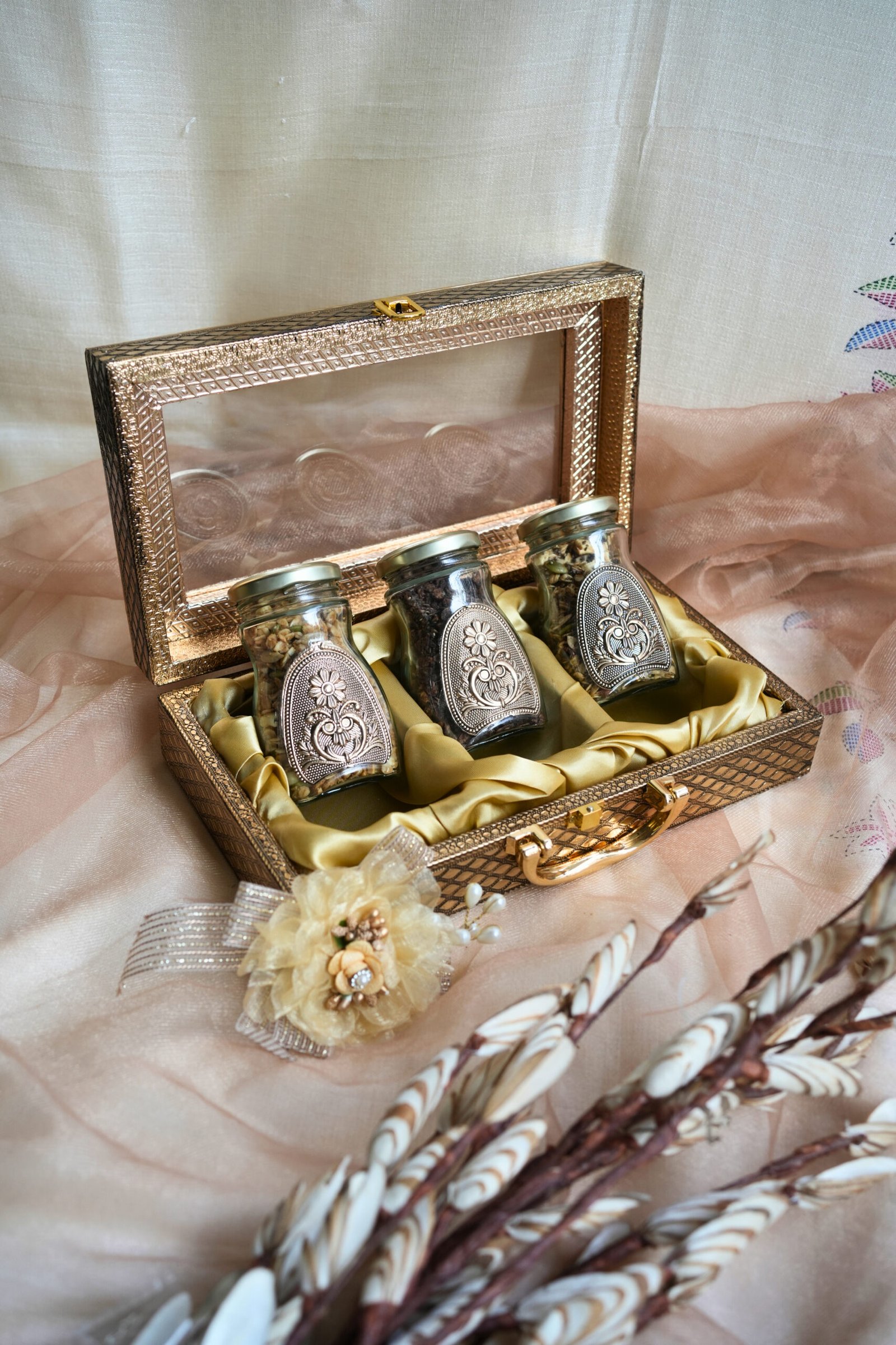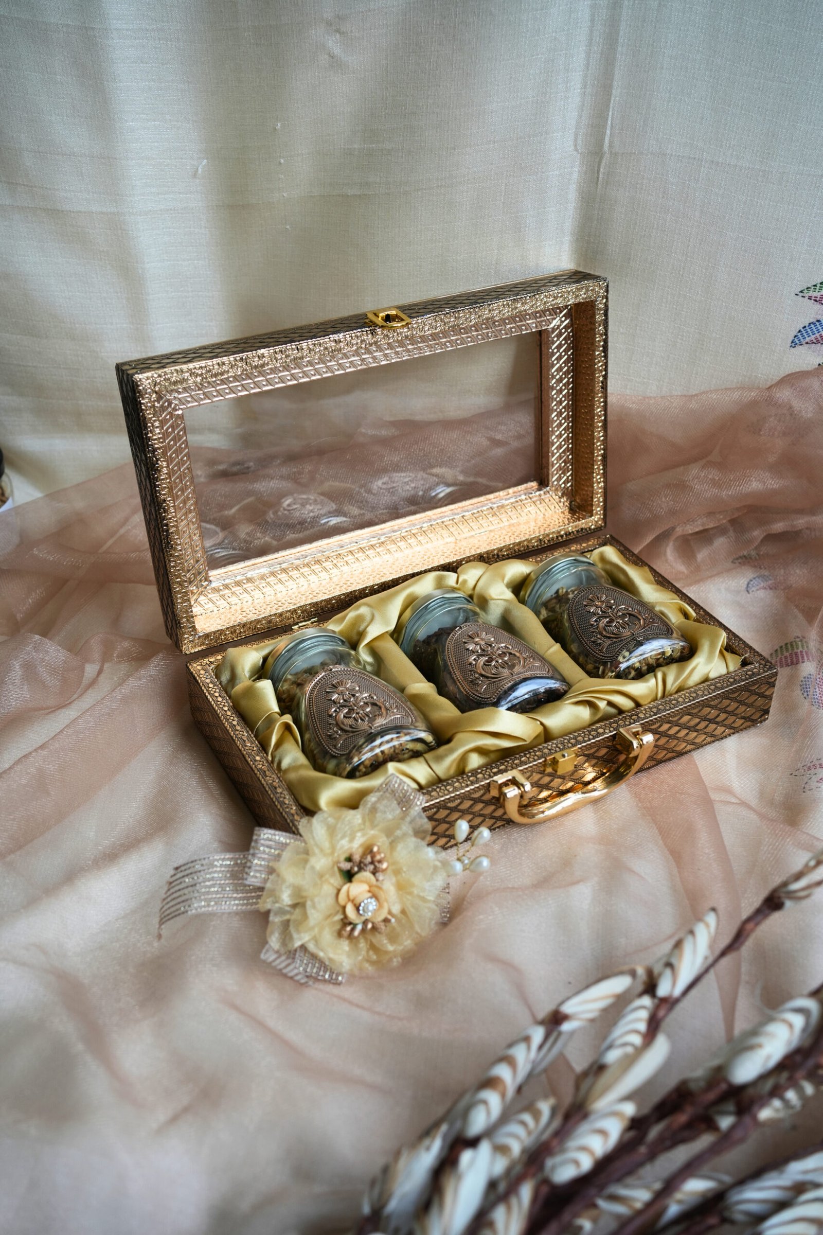 Packaged in an elegant golden keepsake box with ornate jars, this hamper makes a thoughtful gift that’s both nutritious and indulgent.