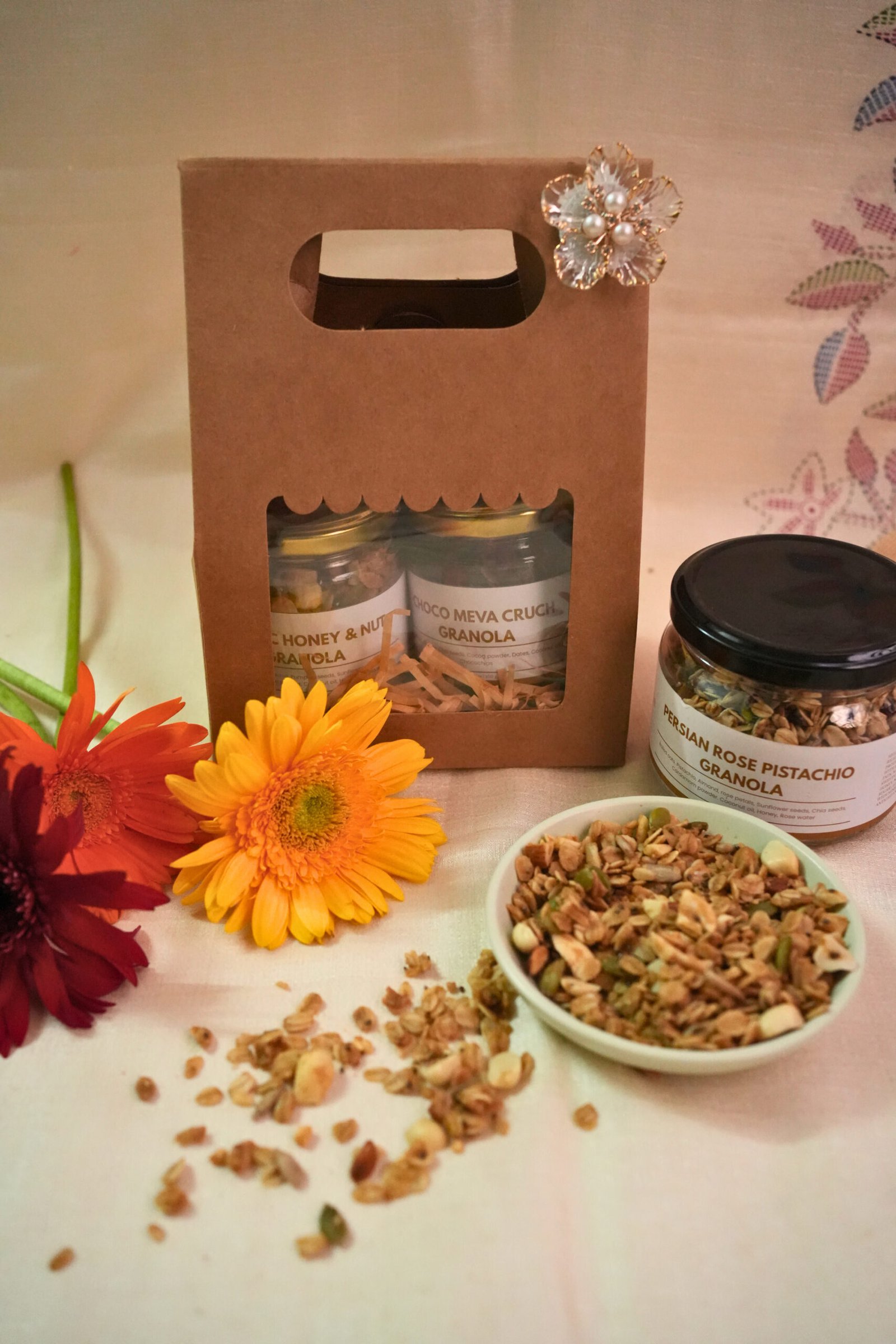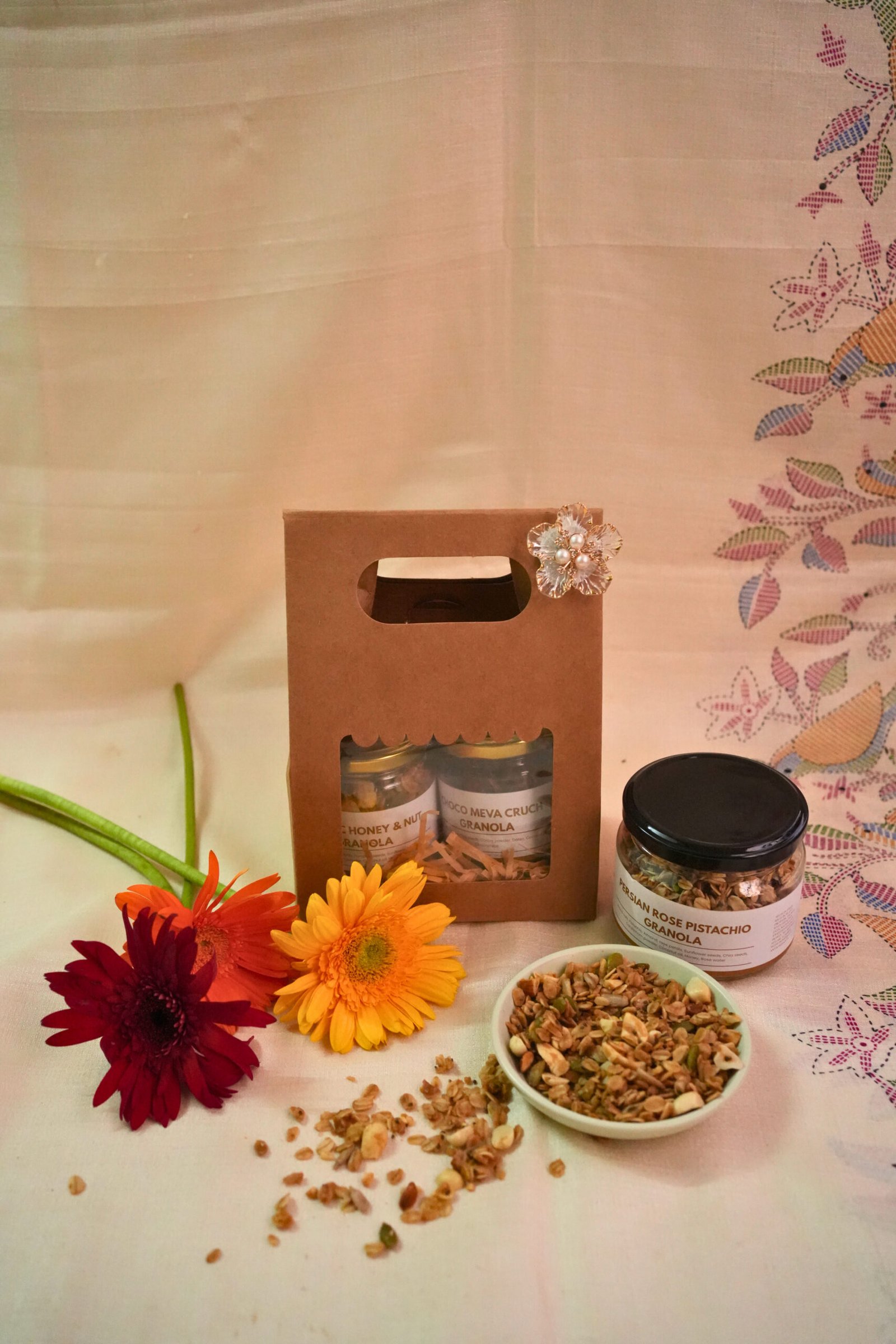 You can also customise your box by choosing any two flavours from our granola collection to create a truly personalised gift. With its natural, minimalist design and a clear window displaying the delicious treats, this box makes a perfect gift for birthdays, thank-you gestures, or any occasion that calls for a small, tasteful present.