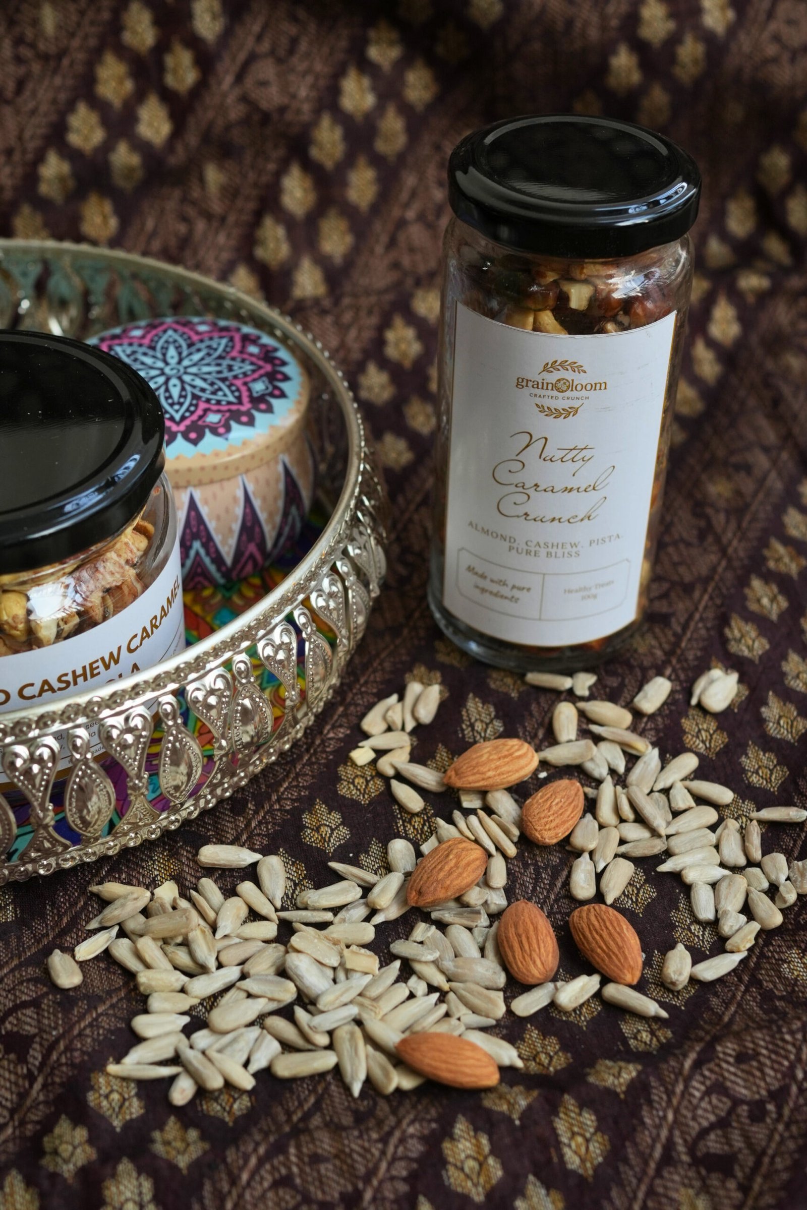 ✨ Nutty Caramel Crunch (100g) – caramel-coated nuts with a perfect balance of crunch and sweetness.