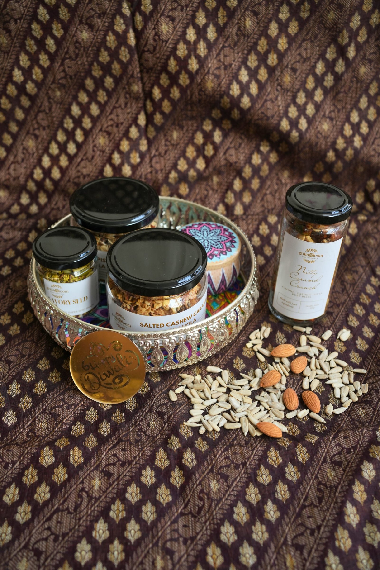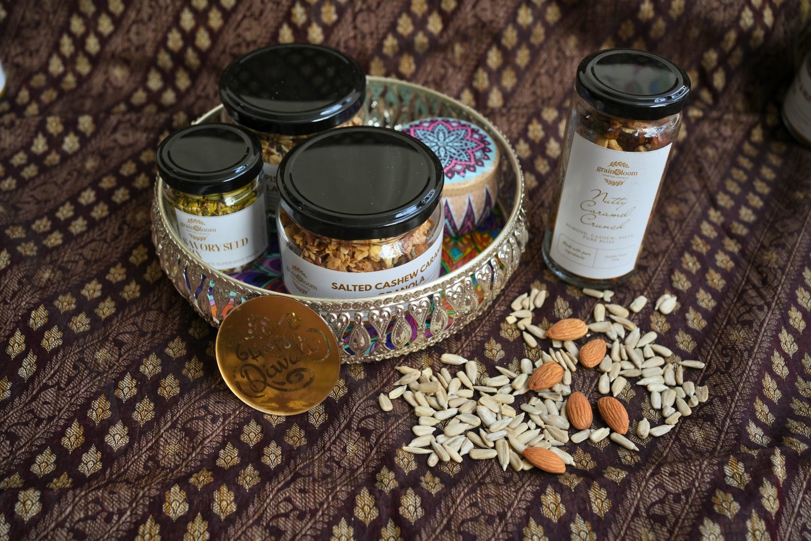A perfect harmony of tradition and gourmet delight, this hamper makes a memorable gift for Diwali, weddings, or corporate occasions — where health meets heritage.
